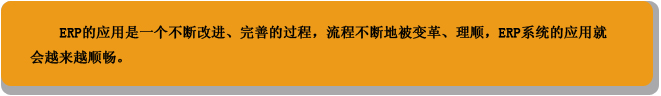 ERP的应用是一个不断改进、完善的过程。因为宁波天阁汽配导入ERP系统较早,刚开始高格的人还没有长驻,有问题就打电话去上海、深圳,顾问师就联机进来,进行远程诊断,做版本更新,加入新的程序。从导入ERP至今的一年多时间,高格已经为其进行了三次版本更新,宁波天阁汽配的应用也不断成熟。但即使是这样,还会发现一些新流程出来,需要不断地完善。比如有人借走一个料件,该如何处理?这就需要设计一个借走的流程,调整ERP的相关参数设置,并且告诉使用者按照新设计的流程操作,如果有人借出了,就在系统中作一个记录,注明是什么人,什么时间借走,还回来后再注销。通过这样的过程,流程不断地被变革、理顺,ERP系统的应用就会越来越顺畅。