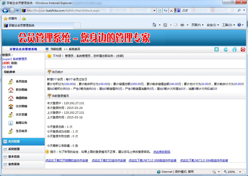 试用网址: http://HuiYuan.BaiZhiDa.Com 账户:0001 密码:0001